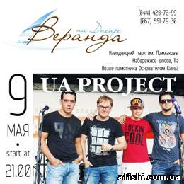 Группа UA Project – уникально неповторимый музыкальный коллектив, играющий в стиле – Disco, Pop, Soul, Jazz, Ukrainian folk. 9 мая они будут радовать посетителей Веранды на Днепре прекрасными песнями, вдыхая в душу каждого слушателя весеннее настроение! Начало в 21:00 Мы ждем Вас по адресу : г. Киев, Набережное шоссе 11а, (мост Патона, парк им.Примакова), Или звоните прямо сейчас: 044 428-72-99 facebook.com/veranda.uaМы ждем Вас по адресу : Набережное шоссе 11а, (мост Патона, парк им.Примакова), Или звоните прямо сейчас: 044 428-72-99 http://www.facebook.com/veranda.ua |