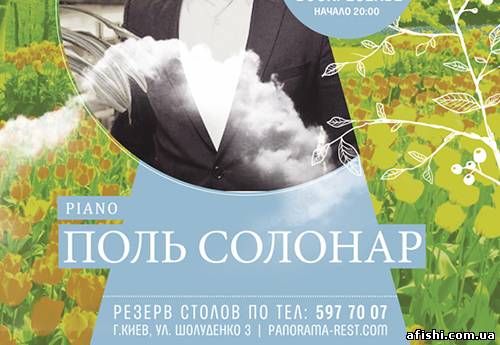 Текст объявления: Поль Солонар – виртуозный пианист, проповедующий в музыке новомодный стиль «world music».